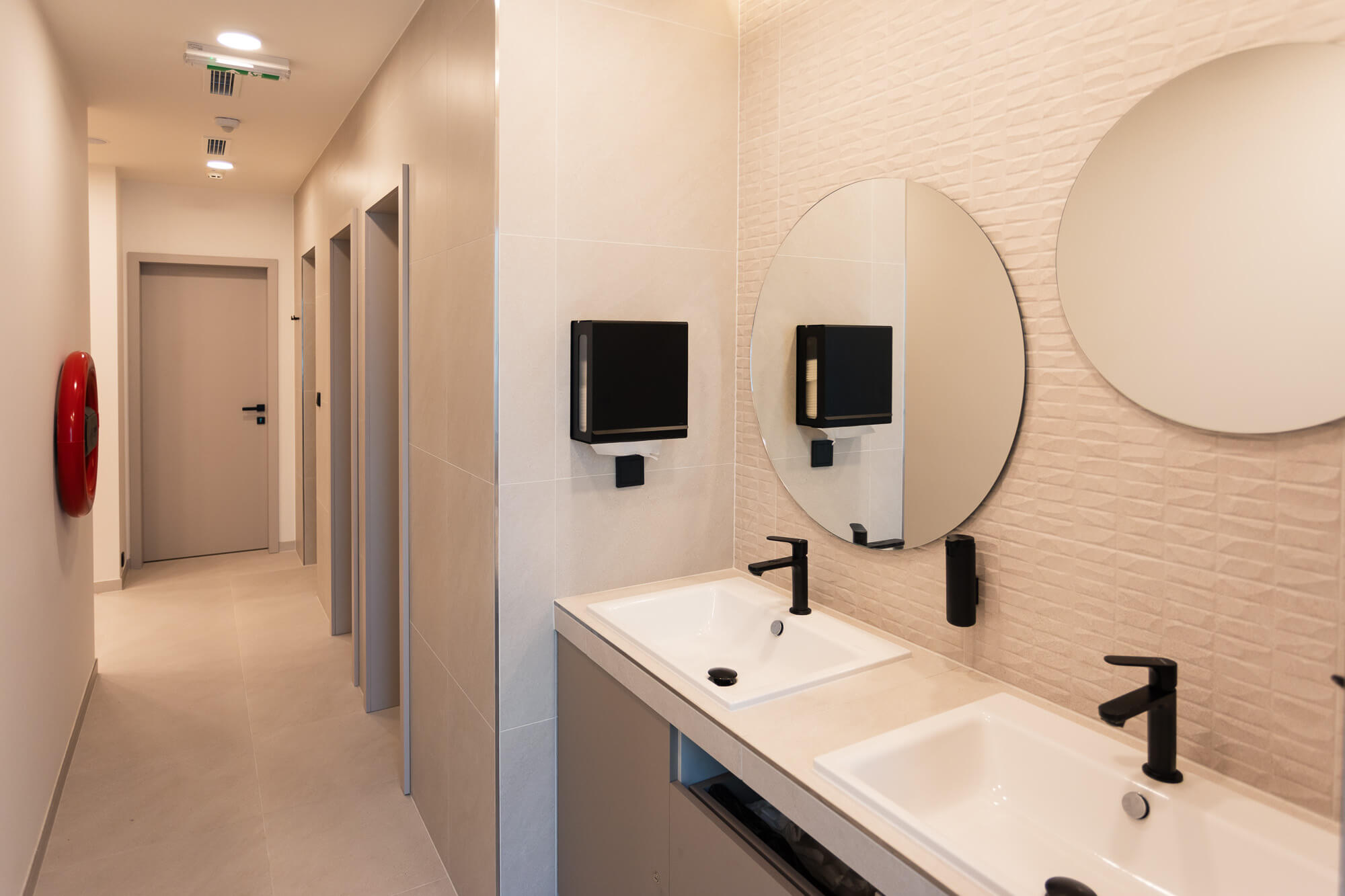 We are proud of this project mainly because we were able to meet the demanding acoustic requirements, thereby ensuring full comfort for both the users of the center and the tenants above the ballrooms. We have also created a harmonious interior that promotes relaxation and personal development.