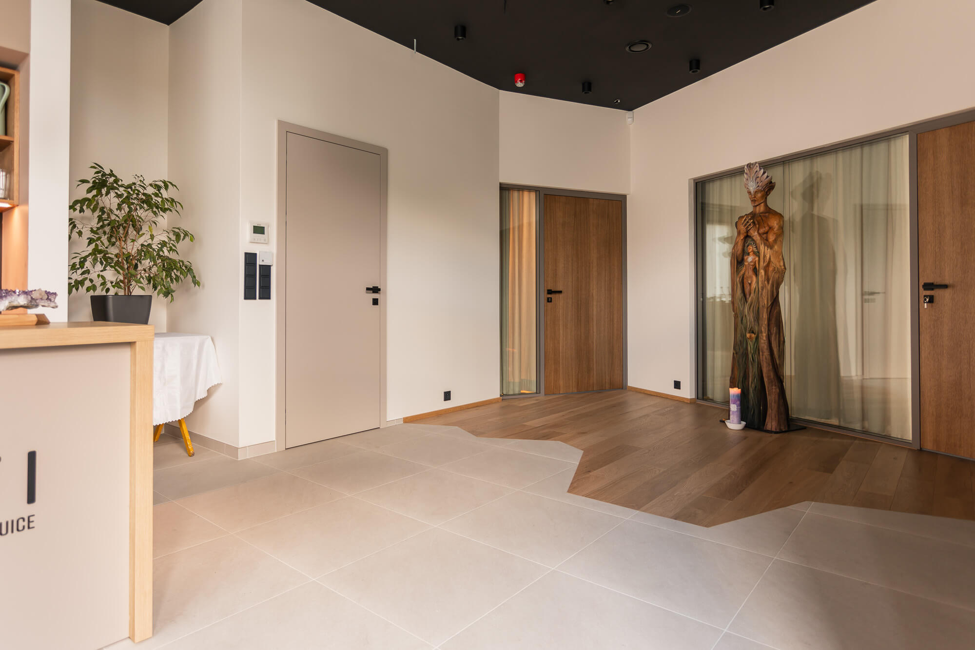 As part of this project, we also carefully coordinated the technical solutions with regard to the overall interior design. The calm color scheme, wood paneling and flooring were designed to make the space feel cozy and promote relaxation. Although we did not participate in the delivery of the furniture, our construction modifications and technical installations created a solid foundation for the space to be fully functional and correspond to the client’s ideas of a personal development center. The result is a harmonious environment that meets all aesthetic and functional requirements.