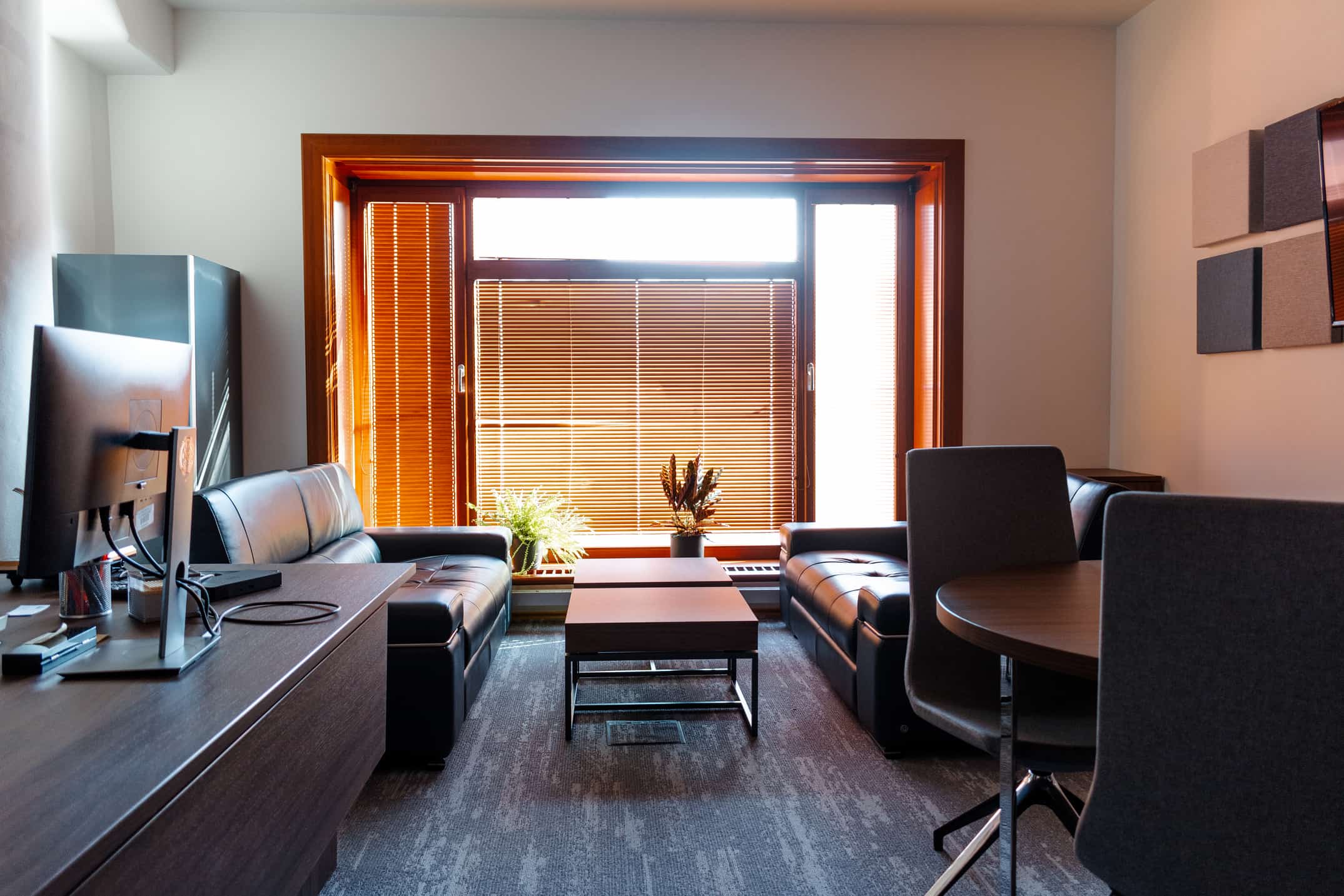 We improved the acoustics of two rooms and installed upholstered acoustic panels from office furniture manufacturer Narbutas on the wall. We chose the colour shades of the panels with the overall design concept in mind. We created an original composition of the panels and combined three colour shades. The panels thus create an unusual decoration and at the same time fulfil a practical function.