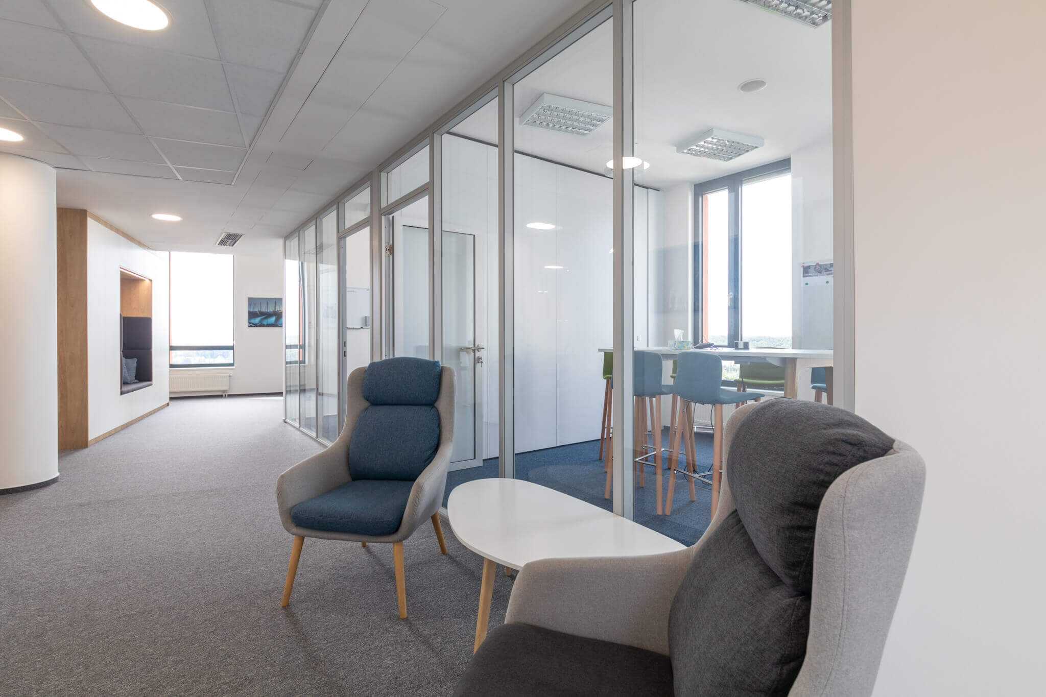 Thanks to the good timing of the whole project and meeting the deadlines, there was no disruption to operations and the client moved out of the old offices without any complications. In the new offices, employees are welcomed not only by a fresh design, but also by a green vertical garden that we installed in the entrance area.