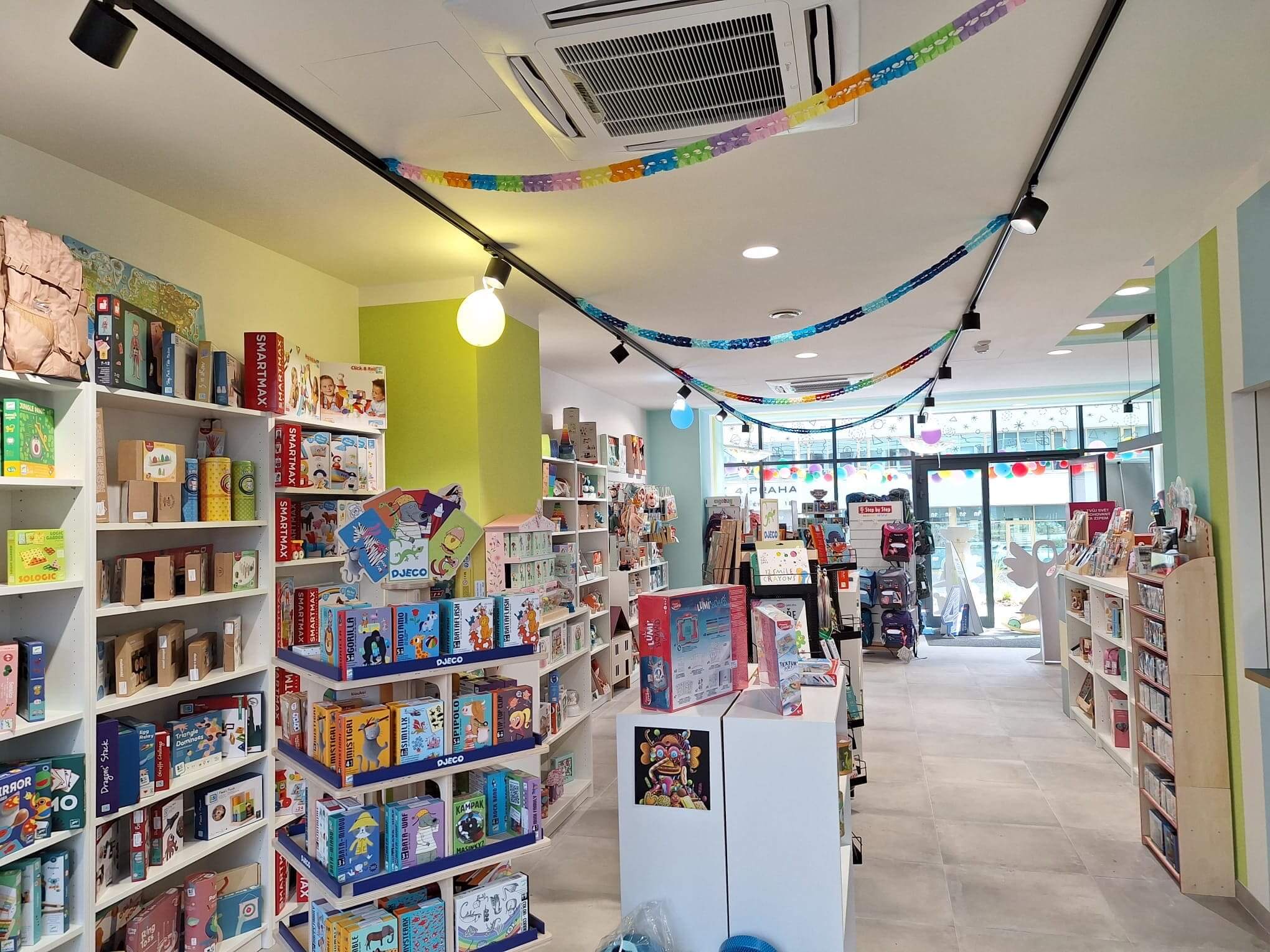 Our task was to ensure complete construction work and coordination of technological solutions. The implementation included plasterboard partitions, preparation of space for the installation of a kitchen unit, plasterboard suspended ceiling, installation of lighting, painting and paving. An interesting element of the store was the colorful stripes on the walls and ceiling, which perfectly match the overall concept focused on children’s world. These details underline the joyful atmosphere and create a pleasant environment for young and old visitors.