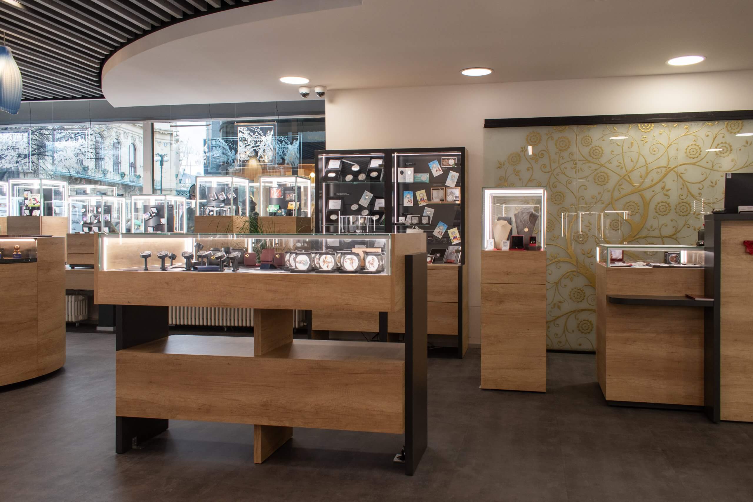 Kromě nábytku, podlah a podhledů jsme v prodejně řešili kompletně nové elektrické rozvody, vzduchotechniku a klimatizace. Velkou výzvou pro nás byla spolupráce s bezpečnostní firmou, kdy na základě společných konzultací byly do prostoru zakomponované bezpečnostní příčky, dveře, ale také kompletní kamerový systém, který tak nově snímá celou prodejnu, včetně nainstalovaných trezorů.