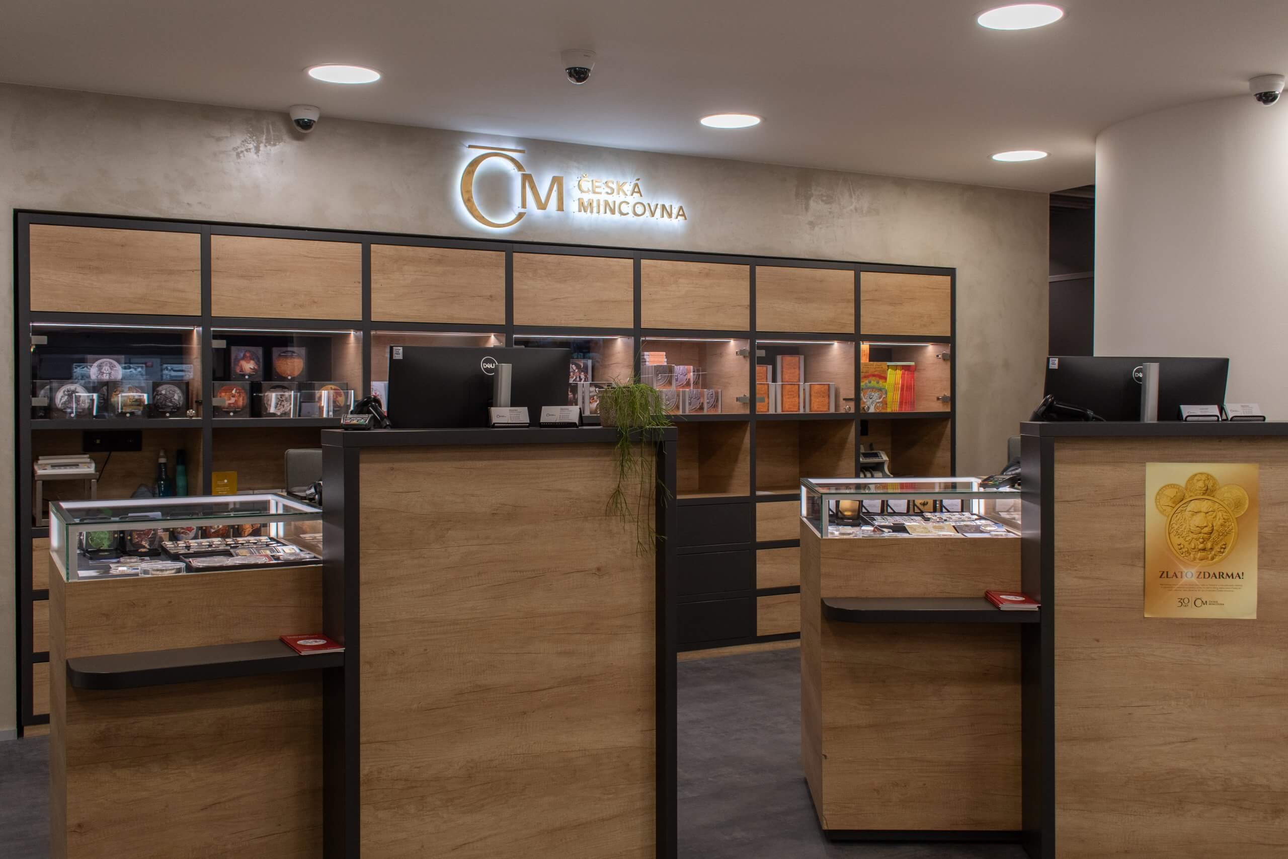 U prodejny v pražské ulici Na Příkopech jsme využili navržený vizuál z předchozí spolupráce s Českou mincovnou, a nová prodejna tak svým stylem přesně zapadá do pobočkového portfolia našeho klienta. Vzájemné spolupráce si velmi vážíme a věříme v její úspěšné pokračování i nadále.