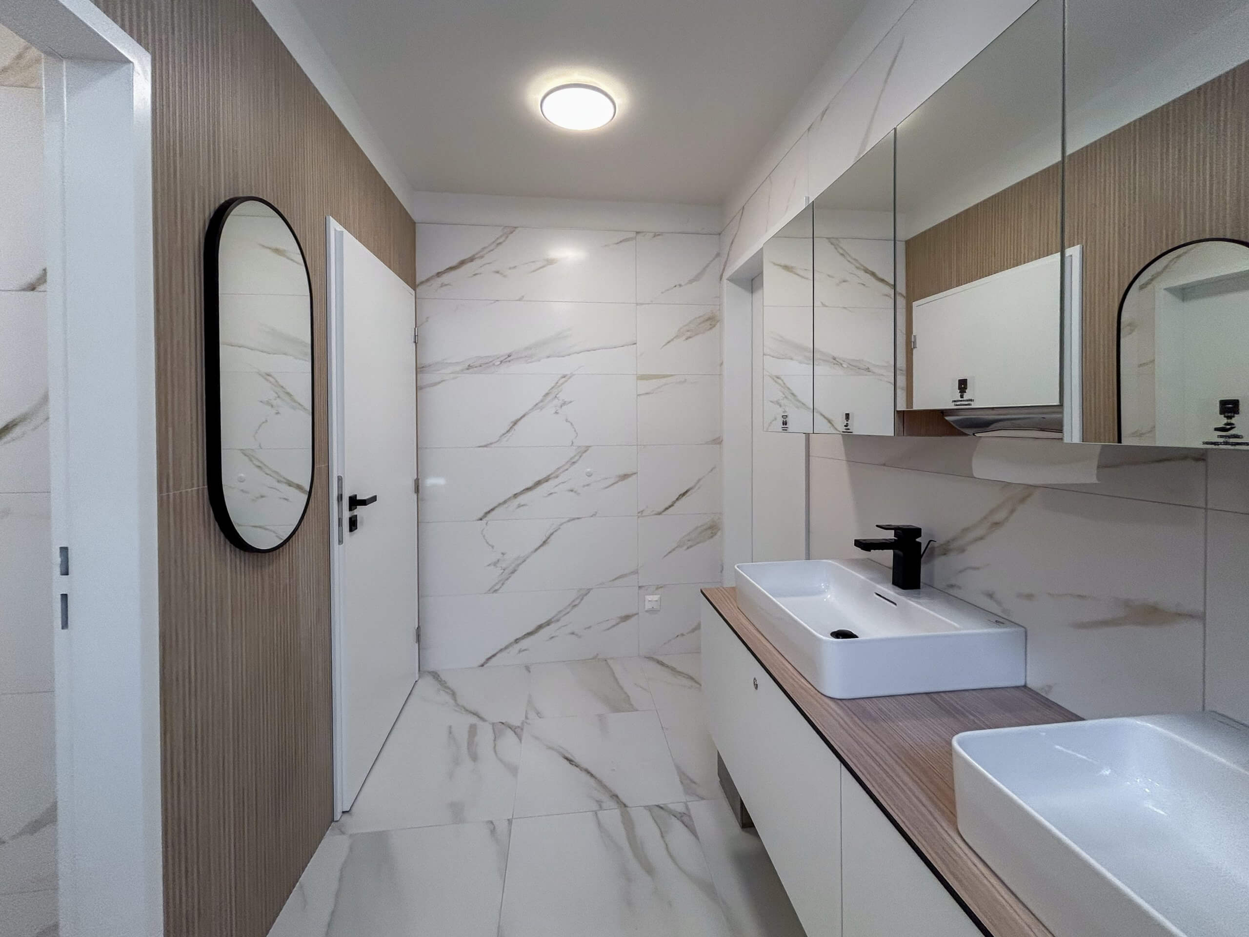 V průběhu léta jsme zrealizovali kompletní rekonstrukci dámských a bezbariérových toalet v Hotelu ILF. Projekt vycházel z návrhu klientova architekta a naším úkolem bylo provést stavební práce i zajištění veškerých interiérových prvků. Cílem bylo vytvořit moderní a funkční zázemí, které působí elegantně a odpovídá standardu hotelového prostředí.